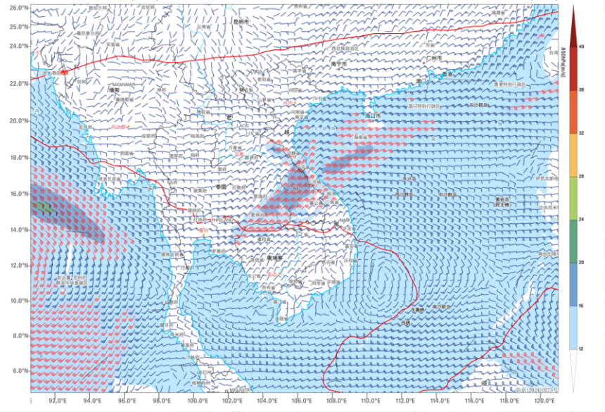 Persistent heavy rainfall is occurring in the eastern and southern parts of the Indochinese Peninsula