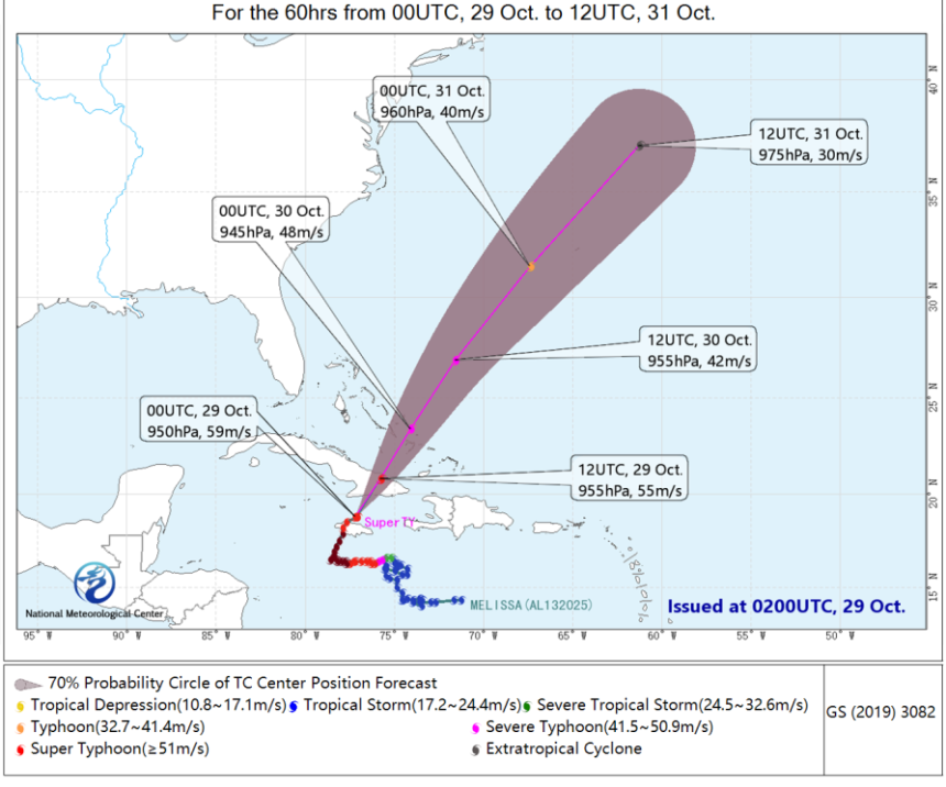 Haiti. It is expected that "Melissa" will move rapidly northeastward at a speed of approximately 20 kilometers per hour and make a second landfall along the southeastern coast of Cuba around noon on t